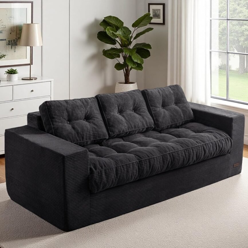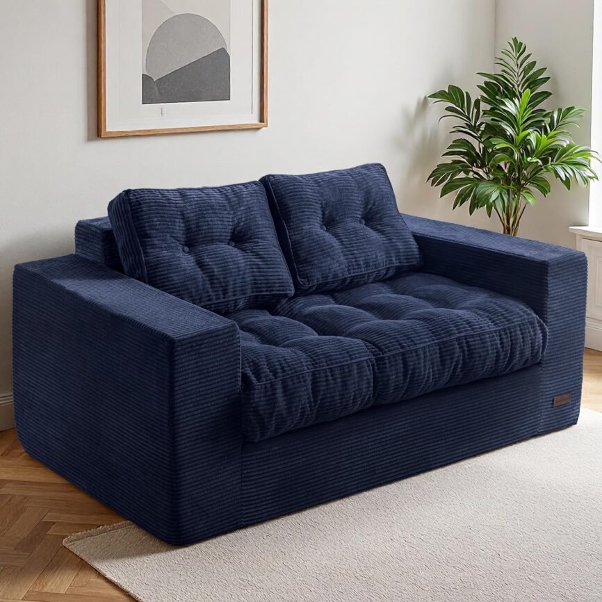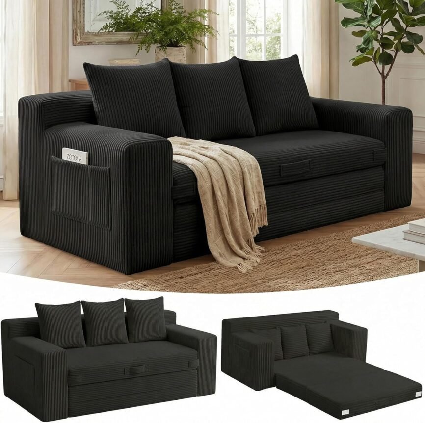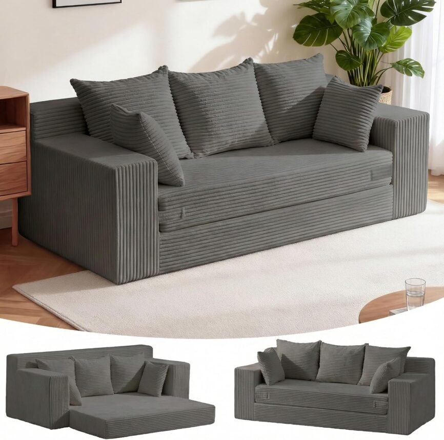 3-in-1 ボーンレスラブシートソファベッド、コーデュロイ
