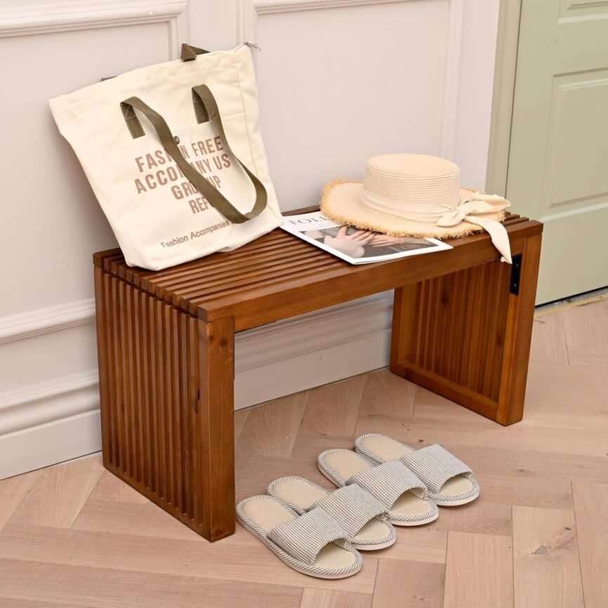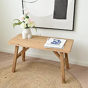 SwallowLiving 木製玄関ベンチ、30インチ、ナチュラル