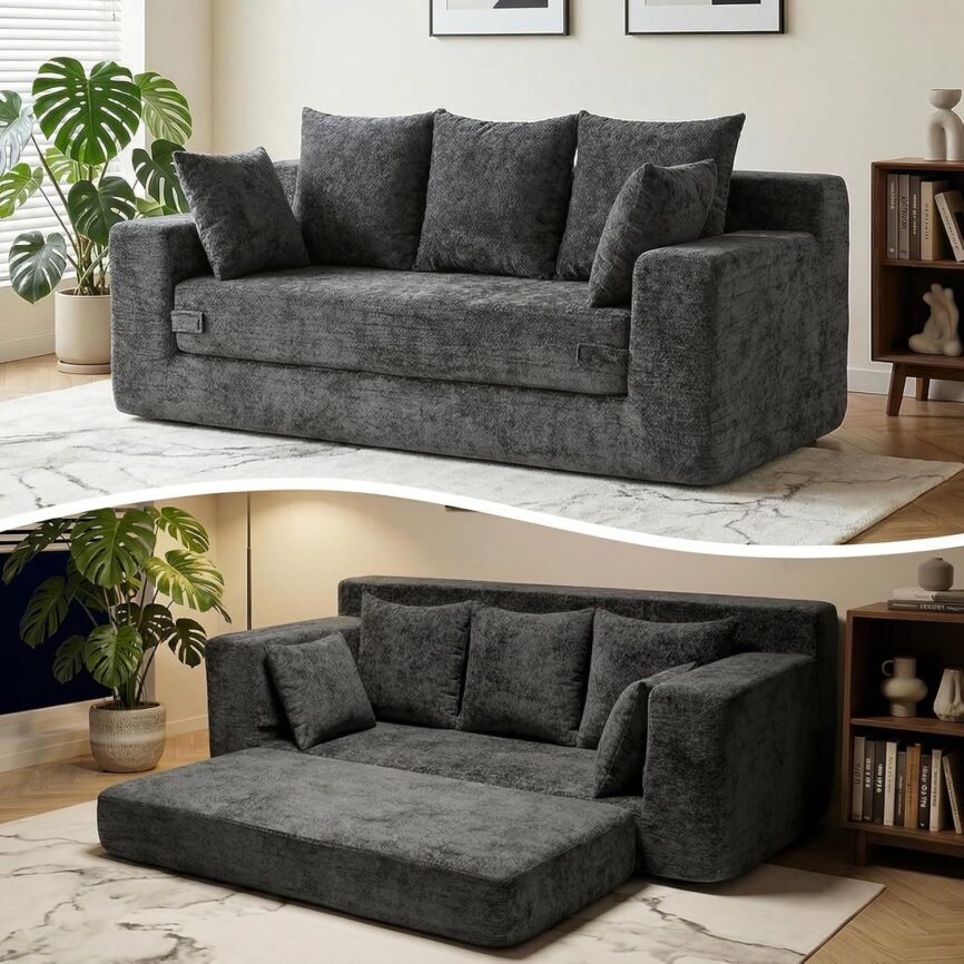 特大サイズの骨なしソファベッド、3人掛け、グレー