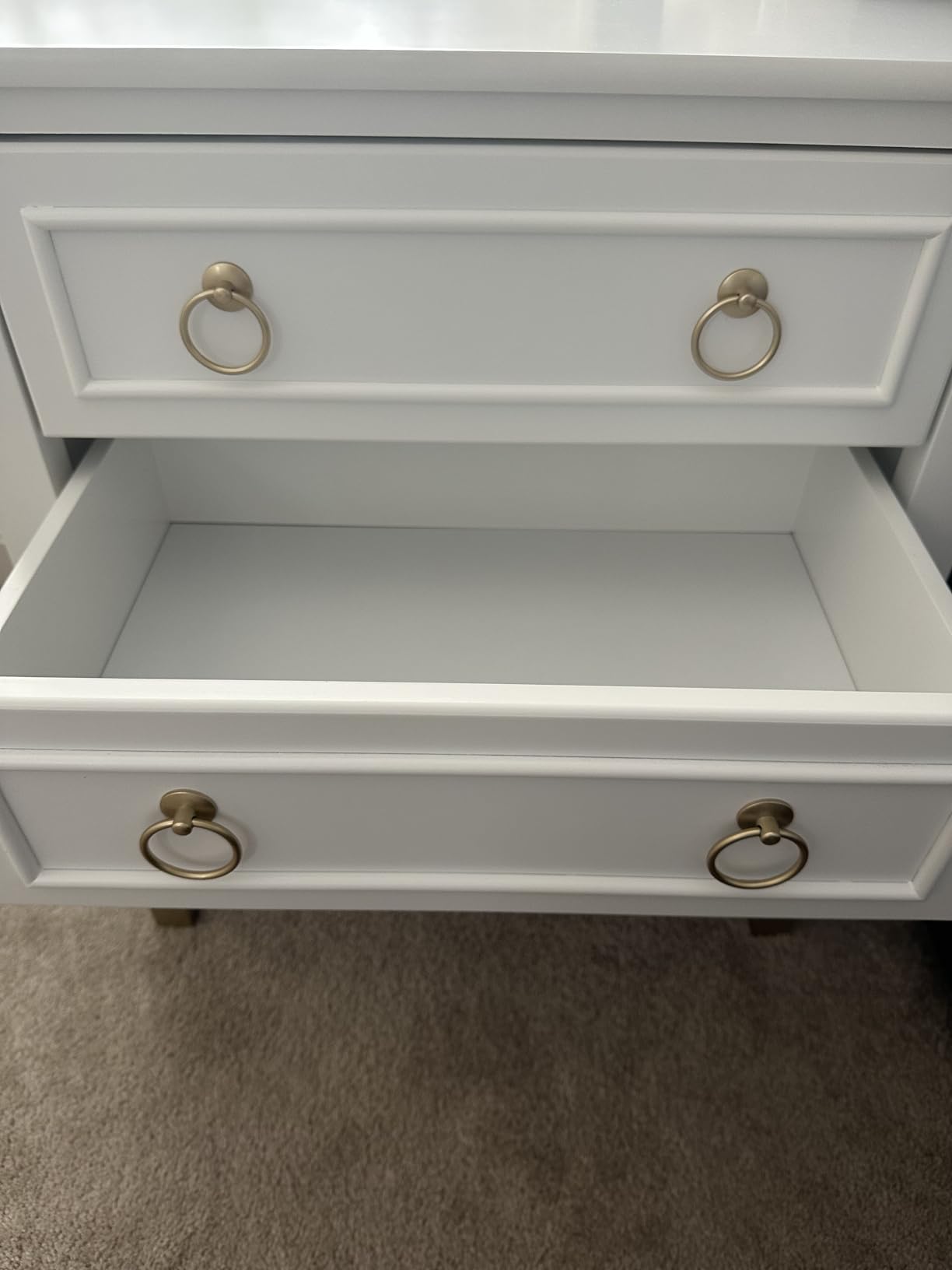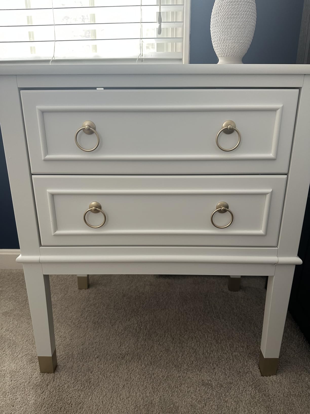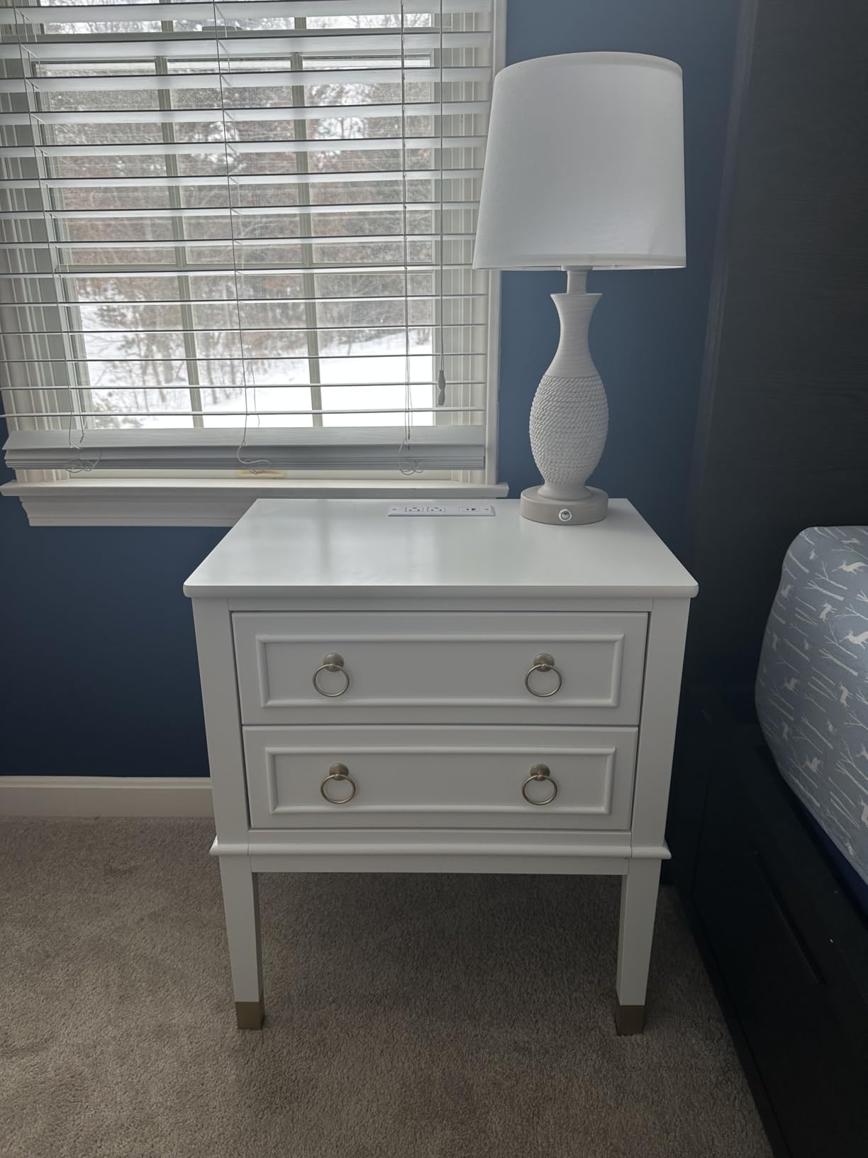 Biggest downfall was the damaged piece (something I have to hide now from guests using the bedroom) and the fact that they provide a corded outlet but the plug will NOT sit low profile to the wall (so if the outlet is behind the nightstand, the stand will have to sit at least 3.5” away from the wall to allow the cord to plug into the wall.) This is not convenient for me and it reveals a poor design because the anti-tip brackets DO NOT extend at least 3.5” out of the stand to mount to the wall. The anti-tip brackets will only work if you either have an outlet that is NOT behind the stand OR you don’t use the outlet and leave it unplugged. I am buying more parts to make this work which is why this is getting 3/5 stars. (Standard US outlet height from the floor is ~17”, the box portion of the nightstand is in the range of 11”-27.50” from the floor.)