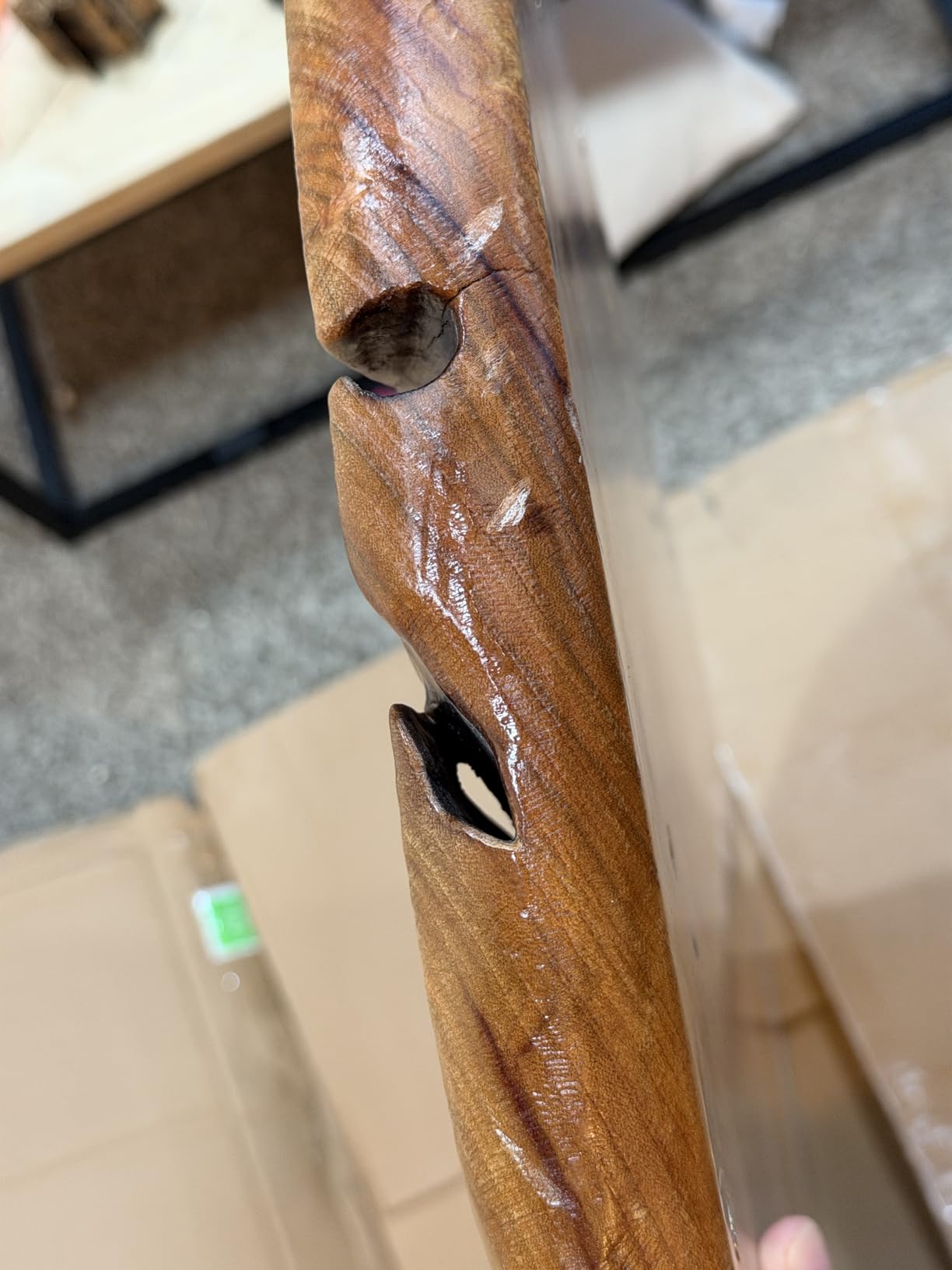 The clear coat had some drips/glob spots as well along the edges, and it was significantly rounded, rather than what I was hoping. I knew it wouldn't be the same as the image, but I did not think it would be so round, and was hoping it would have had more of a natural edge to it.