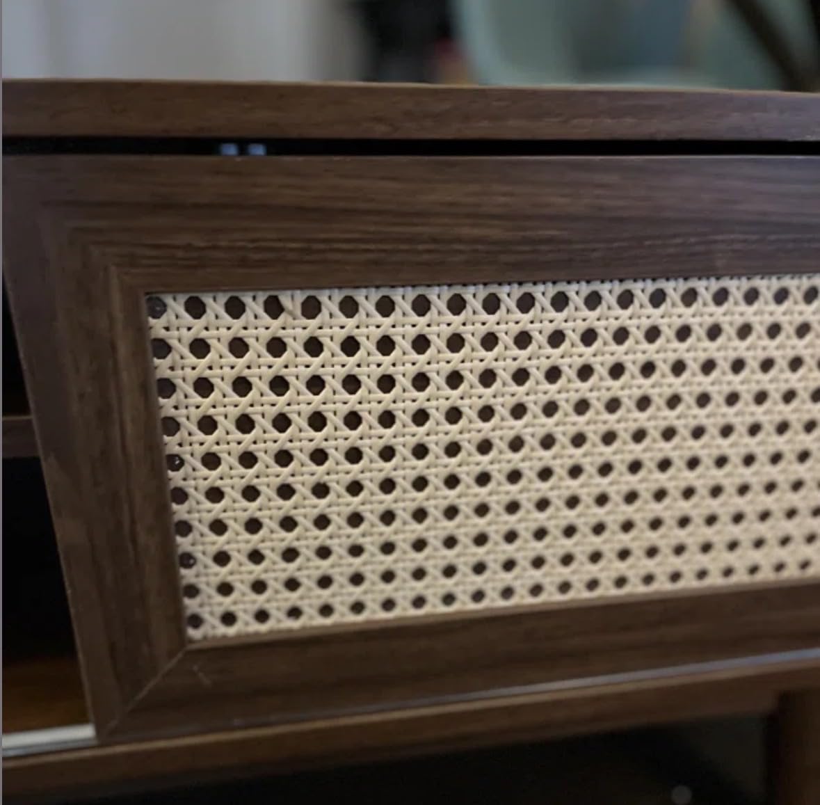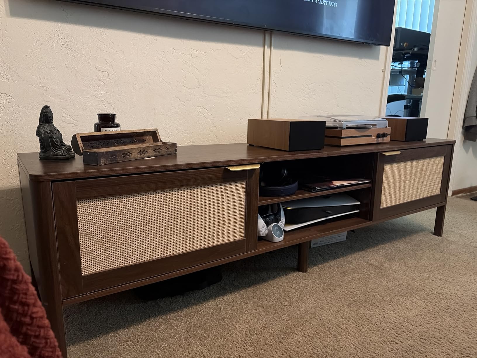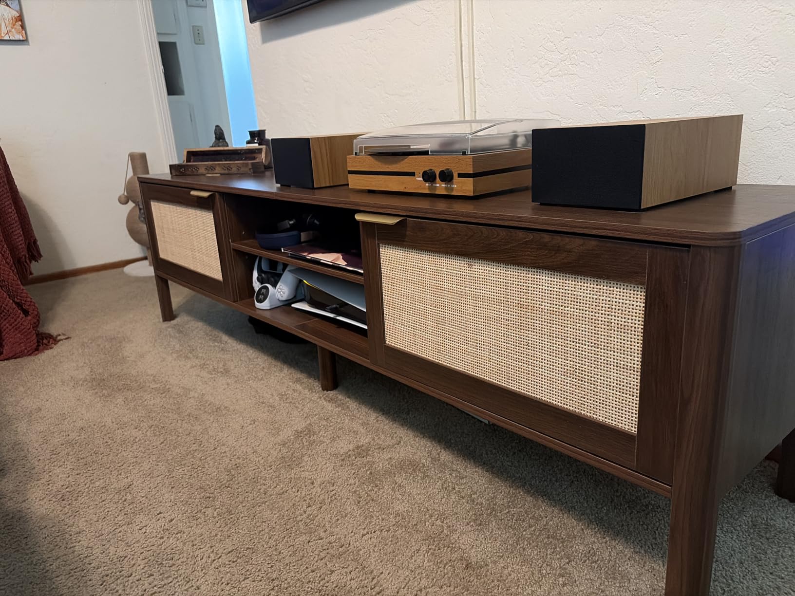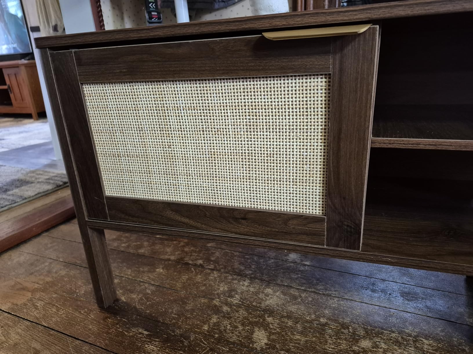 One of the first things I noticed is how nice the rattan detail looks in person. It adds texture and character without feeling too busy, and the walnut color gives the stand a clean, polished feel.