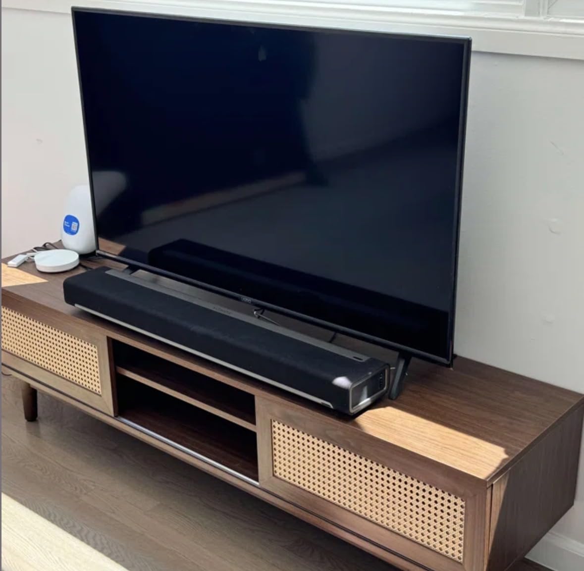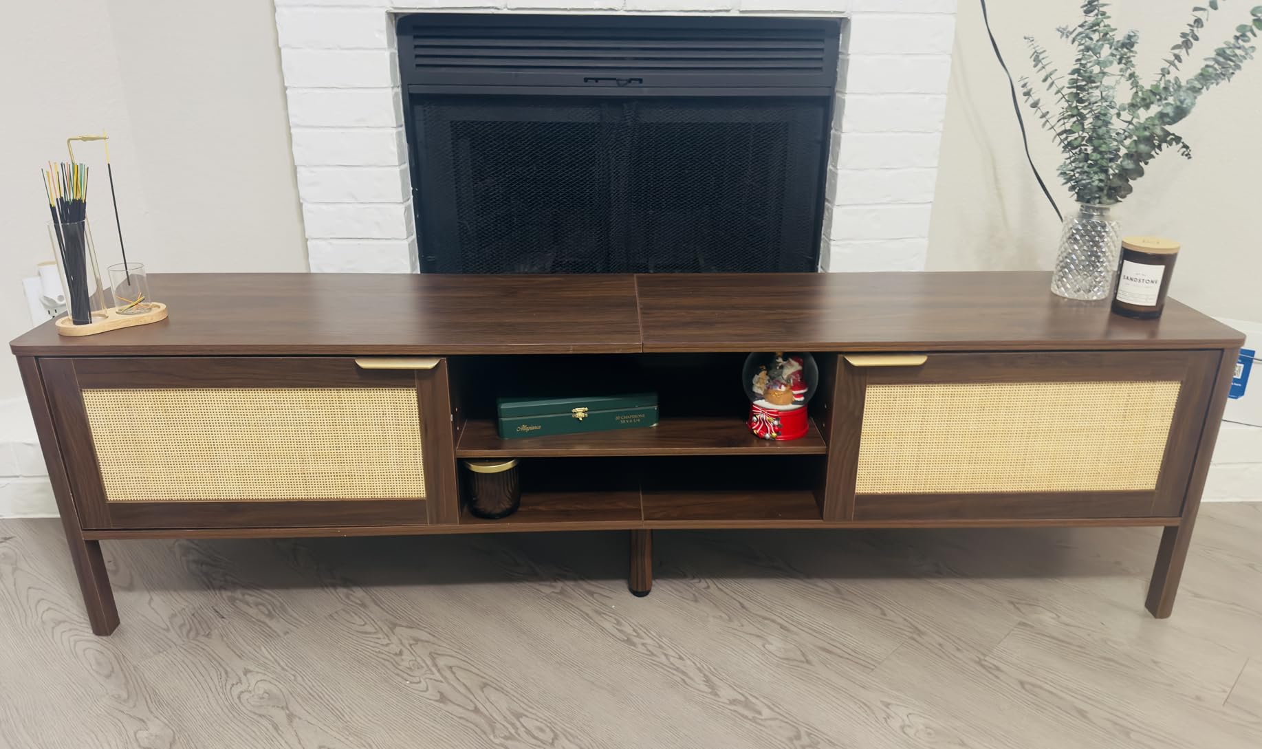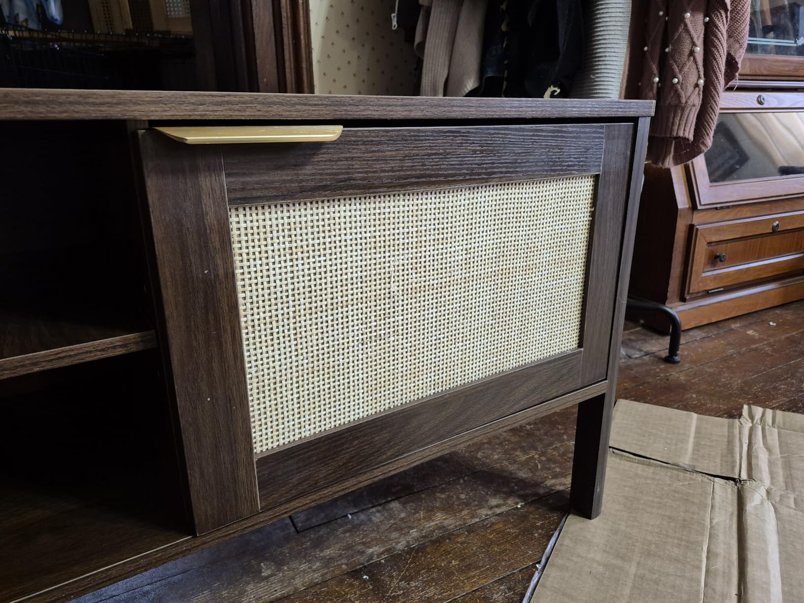 One of the first things I noticed is how nice the rattan detail looks in person. It adds texture and character without feeling too busy, and the walnut color gives the stand a clean, polished feel.