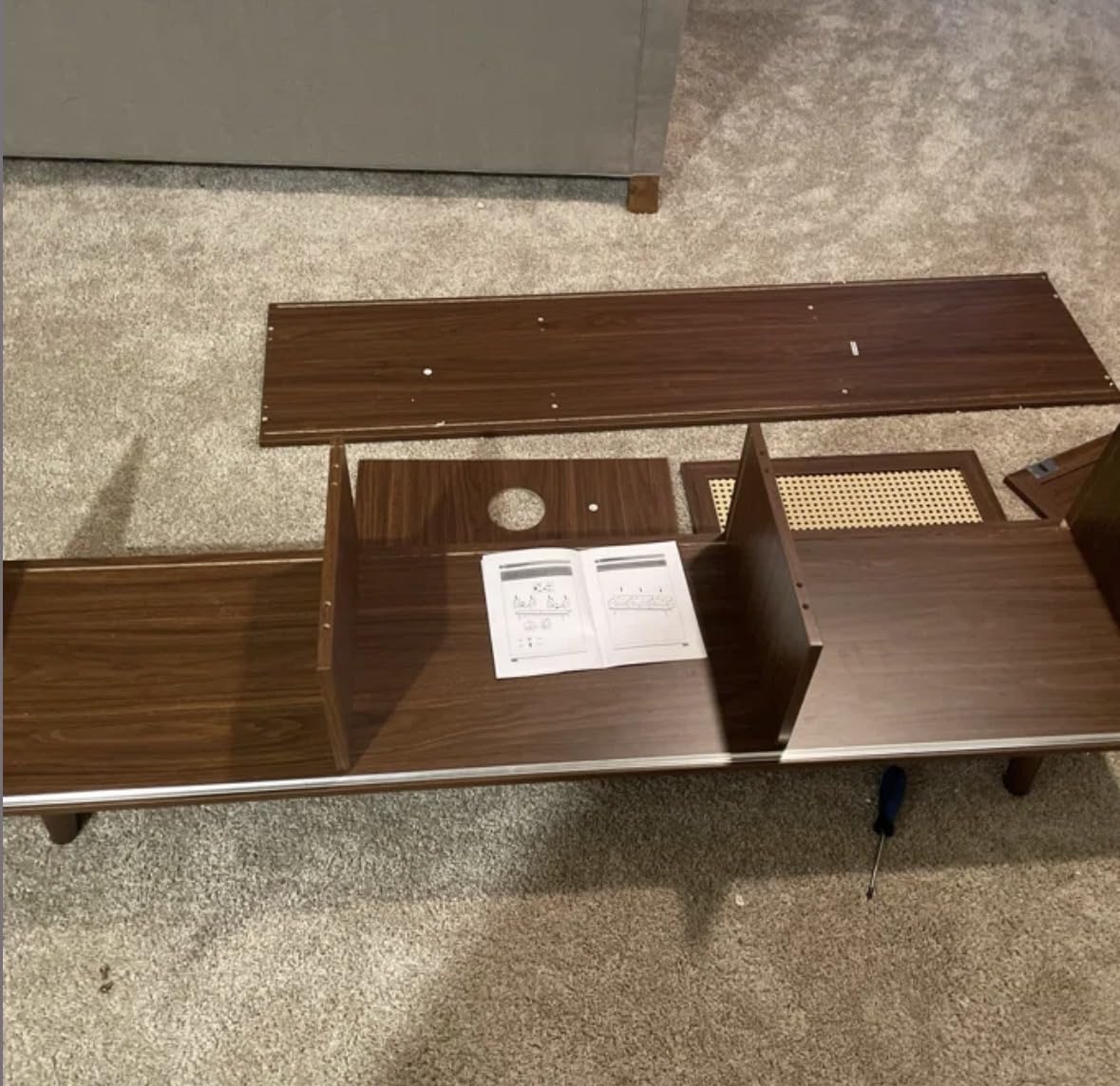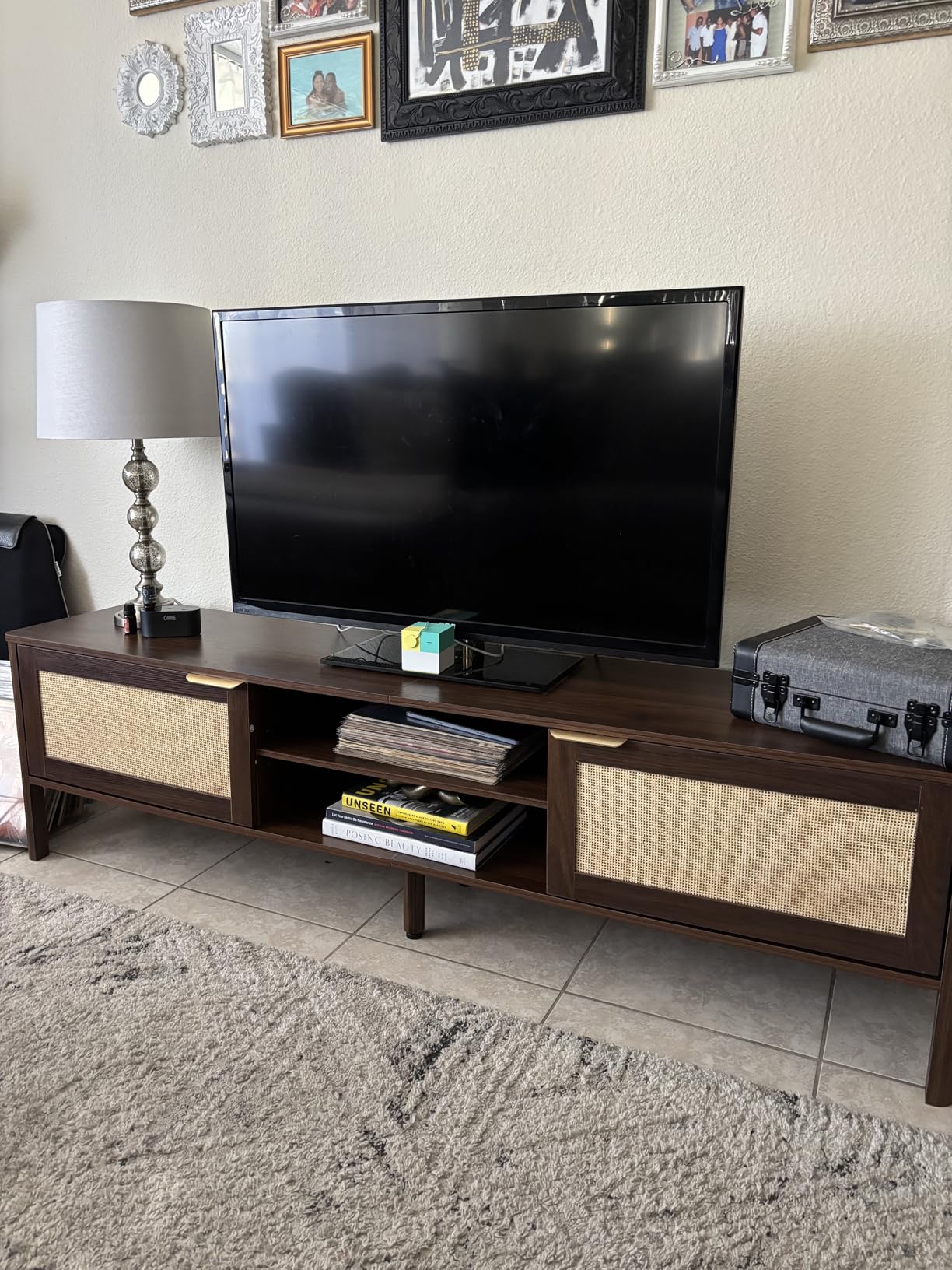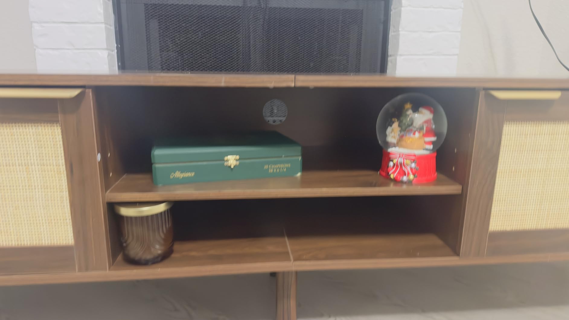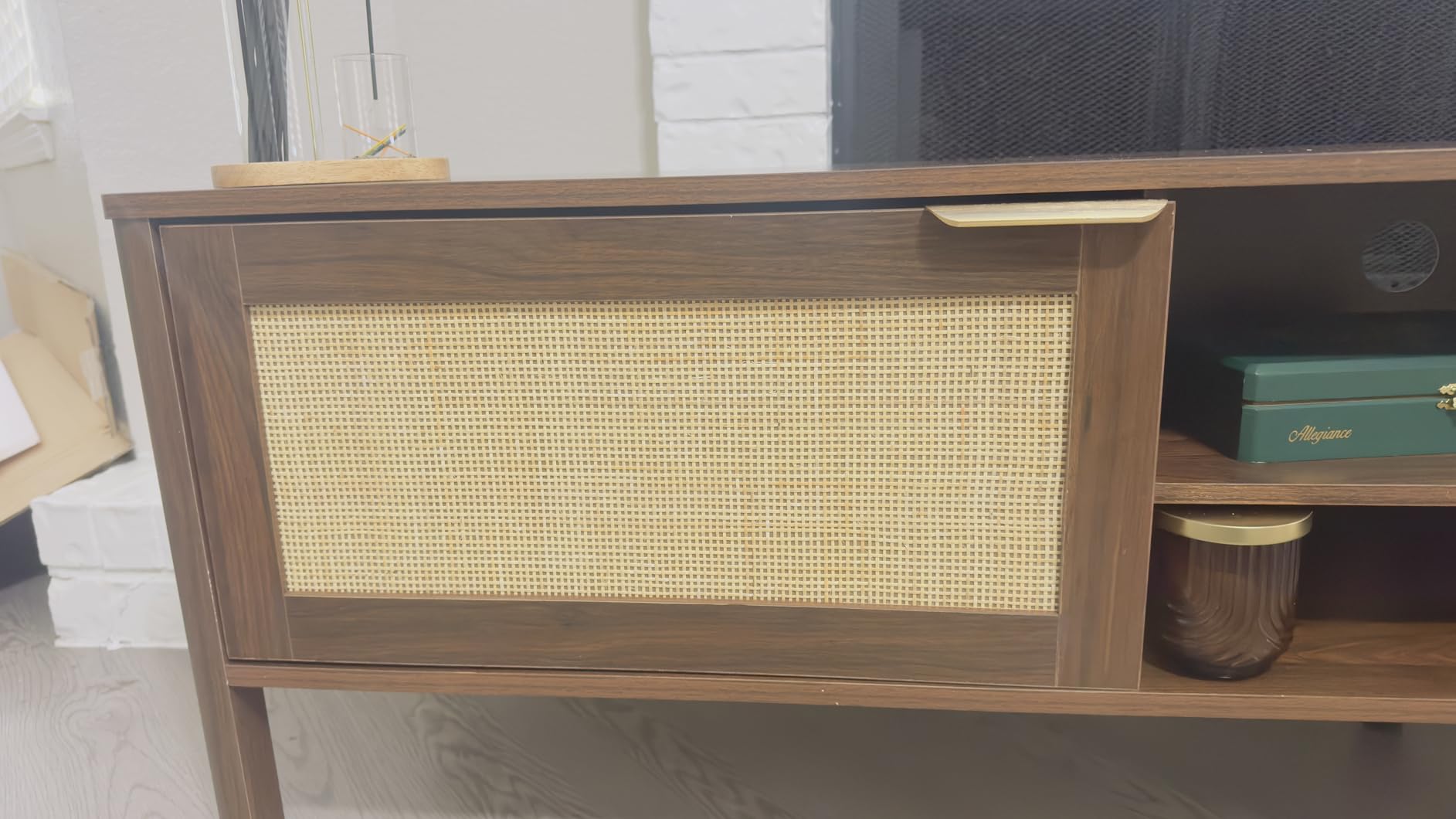 One of the first things I noticed is how nice the rattan detail looks in person. It adds texture and character without feeling too busy, and the walnut color gives the stand a clean, polished feel.